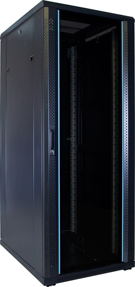 Deze 800mm diepe 32U ongemonteerde serverkast is voorzien van een geluidswerend glazen deur welke voorzien is van een slot. De dakplaat is voorzien van een kabelinvoer waardoor installatiekabels eenvoudig kunnen worden weggewerkt.