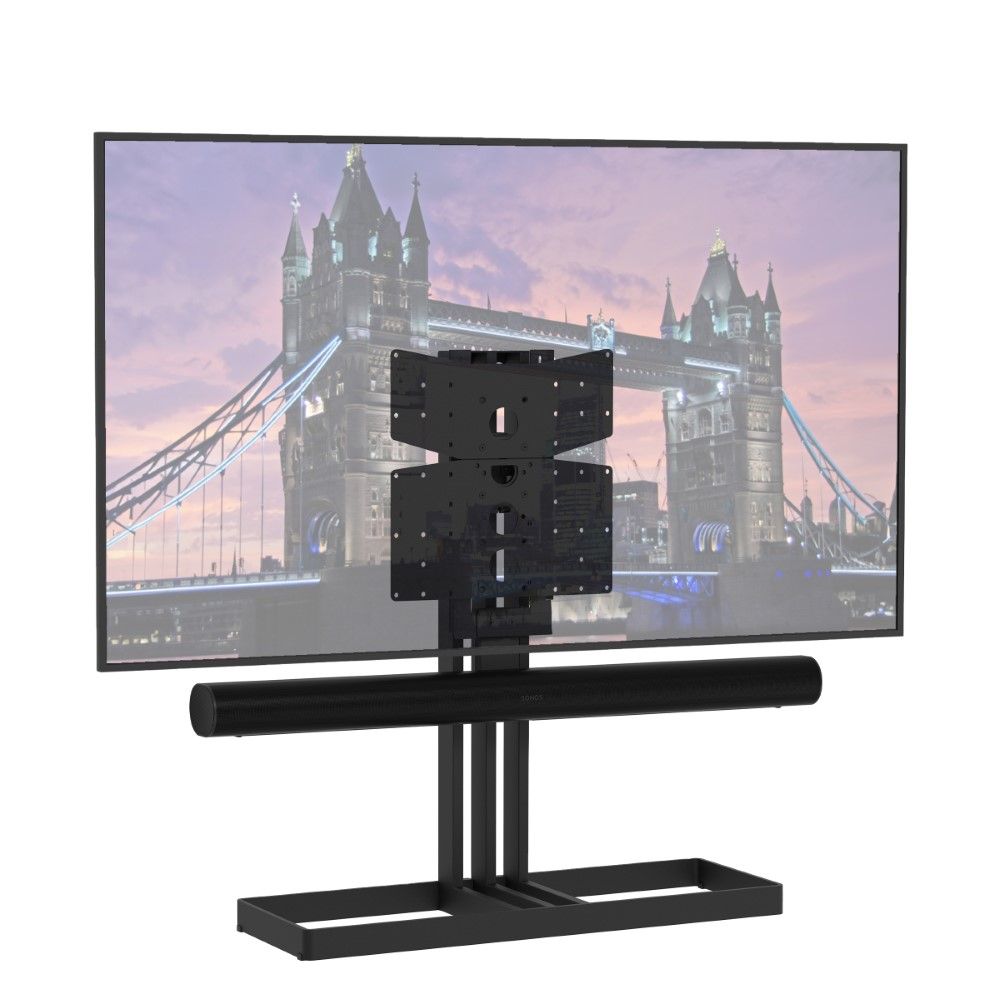 TV vloerstandaard geschikt voor SONOS ARC. De Cavus EDGE is een nieuw ontworpen tv vloerstandaard speciaal voor grotere schermen t/m 85 inch. De opengewerkte voet (98x40cm) zorgt zelfs bij grote televisies voor een ruimtelijke uitstraling. In de kolom is een kabeldoorvoer gemaakt, zodat de kabels netjes zijn weggewerkt. Daarbij is het VESA systeem aangepast, zodat optionele accessoires gemakkelijk kunnen worden gemonteeerd d.m.v. twee schroeven. Ook is het verwisselen van een andere VESA plaat is nu nog makkelijker. Wil je een andere tv ophangen, dan vervang je slechts de VESA plaat door vier schroeven los te draaien en de juiste plaat te monteren. Onze VESA montageplaten zijn er in zeven opties vanaf 100×200 tot en met 600×400.