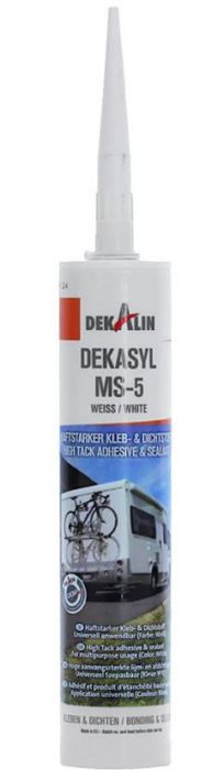 Dekalin Dekasyl MS-5 is een kit die perfect bruikbaar is bij het bouwen en/of renoveren van een camper of caravan. Modified Silicon-polymeer, beter bekend als MS-polymeer, vormt de basisgrondstof voor deze kit. Dit zorgt voor een zeer sterke en elastische hechting, demping, bescherming en afdichting.
