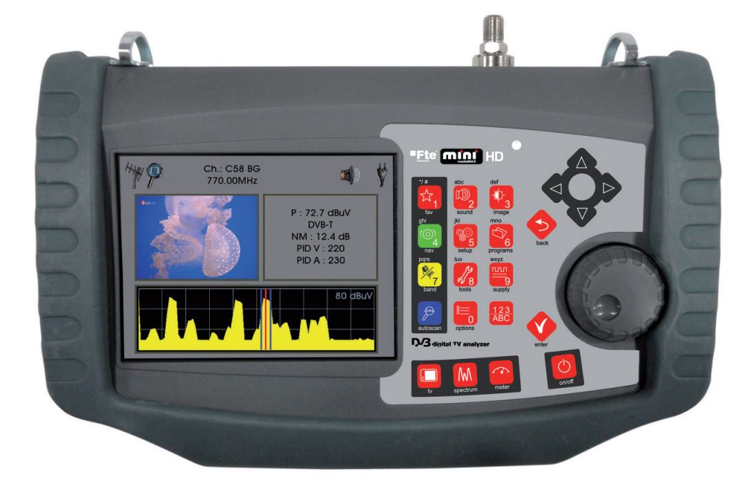 Fte maximal, launches its new meter of MediaMax mini series, the MediaMax mini S2C2T2 HD. A very complete meter with current and future technologies: DVB-T, DVB-T2, DVB-S. DVB-S2, DVB-C and DVB-C2. It weights 1.8Kg and its measures are only 270 x 170 x 70 cm.