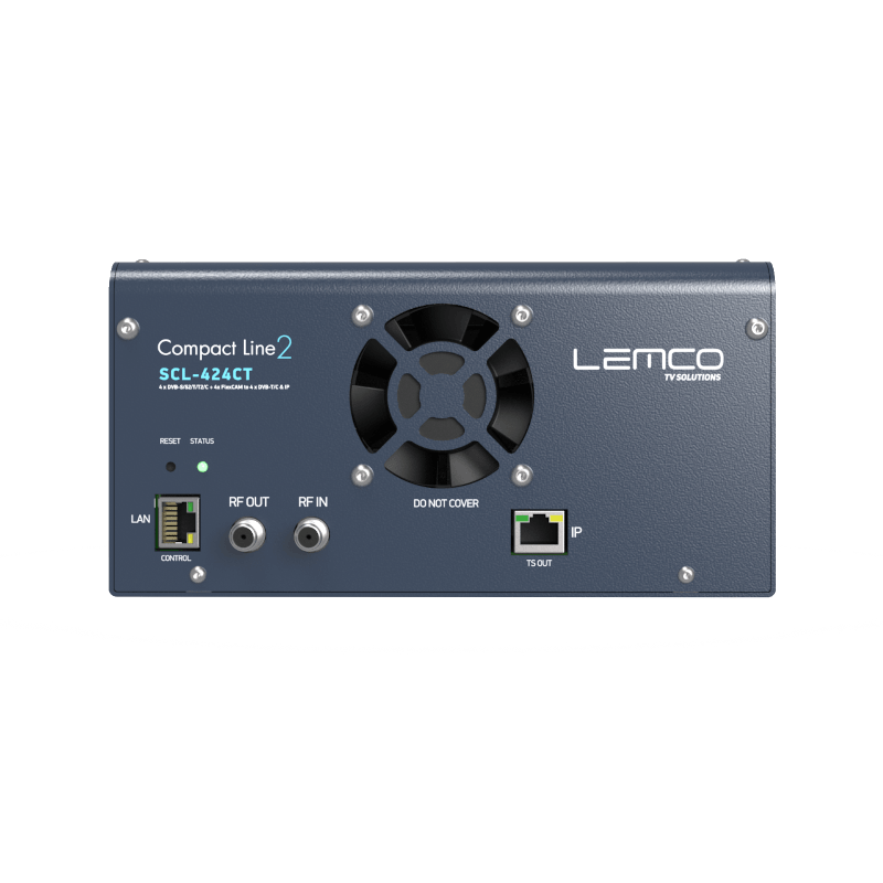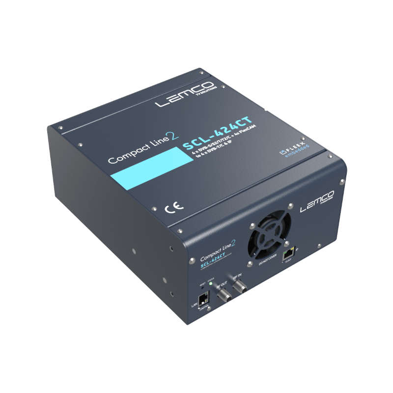 De nieuwe SCL-424CT headend uit de Compact Line 2-serie is een zeer krachtig alles-in-één apparaat dat in staat is om tot 4 onafhankelijke satelliet (DVB-S/S2), terrestrische (DVB-T/T2) of kabel (DVB-C) signalen te ontvangen en deze om te zetten in 4 DVB-T/C RF-uitvoerkanalen, terwijl tegelijkertijd 1 Gbit IPTV-streaming wordt aangeboden. De SCL-424CT ondersteunt 4 CI-interfaces, met gebruik van FlexCAM-technologie, om elk tv-content te kunnen descramblen door gebruik te maken van de juiste CAM (Conditional Access Module). Het ondersteunt ook “pool”-technologie, wat betekent dat de gebruiker elk programma van een van de 4 ingangen kan selecteren en toewijzen aan een van de 4 RF + IP-uitgangen, wat een grote flexibiliteit biedt.