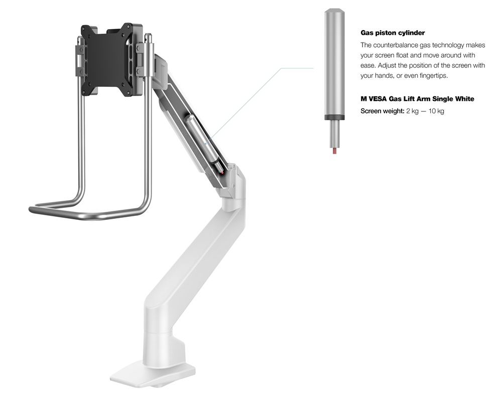 De Multibrackets VESA Gas Lift Arm Single met handgreep is gemaakt van een duurzame aluminium constructie en maakt gebruik van hoogwaardige gasaangedreven ophanging. Dit zorgt ervoor dat het scherm ”zweeft” en vervolgens vrijwel moeiteloos kan worden verplaatst. De slanke en gestroomlijnde VESA Gas Lift Arm Single maakt ruimte vrij en maakt het mogelijk om uw scherm te positioneren voor een hogere productiviteit. De unieke gasveertechnologie met tegengewicht zorgt voor een soepele aanpassing in elke richting. U kunt het scherm eenvoudig van liggend naar staand verplaatsen (als de monitor geschikt is) of het scherm dichter bij uw bureau plaatsen, of hoger, zodat u het in vrijwel elke gewenste werkpositie kunt plaatsen.
