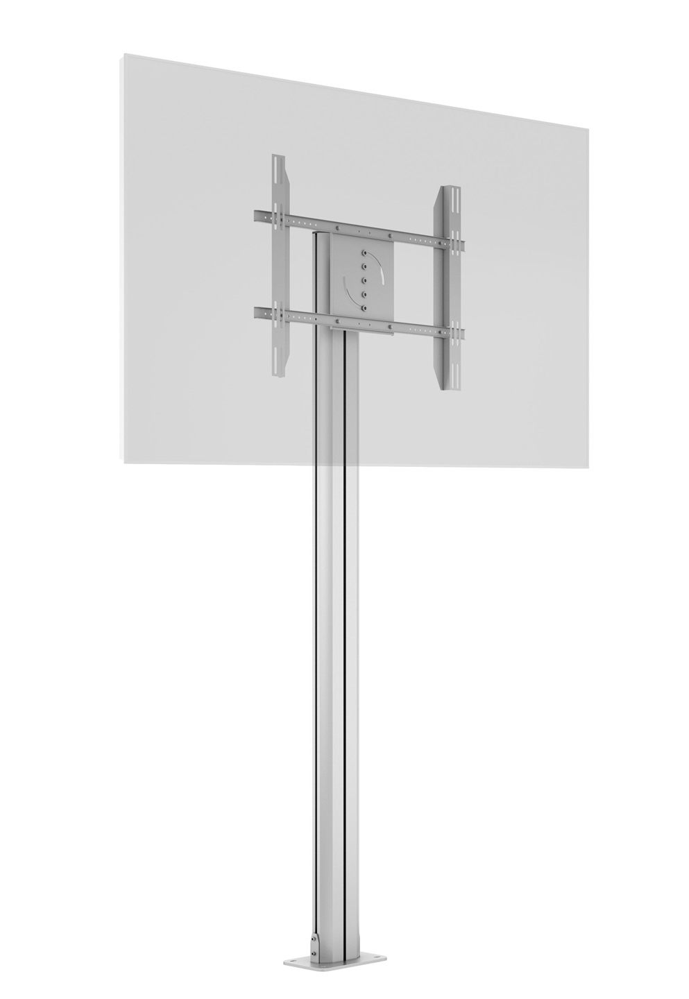 Public Display Stand 210 HD Single zilver met Floormount kan worden gebruikt met schermen in een standaard landschapsmodus of een portretmodus. De optionele displaystandaard kan zelfs in de vloer worden geboord om de displaystandaard op zijn plaats te houden in elke openbare omgeving waarin hij wordt geplaatst.