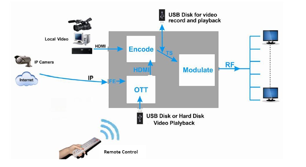 Deze modulator kan gebruikt worden om bijvoorbeeld een blue-ray speler, PVR/ NVR en satelliet decoder in te koppelen en heeft een frequentiebereik van 30-960 MHz.