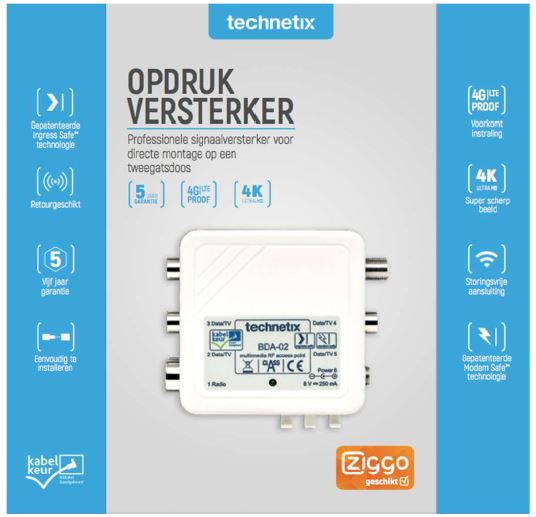 Technetix BDA-02-S SHOP Opdruk versterker Ziggo Geschikt