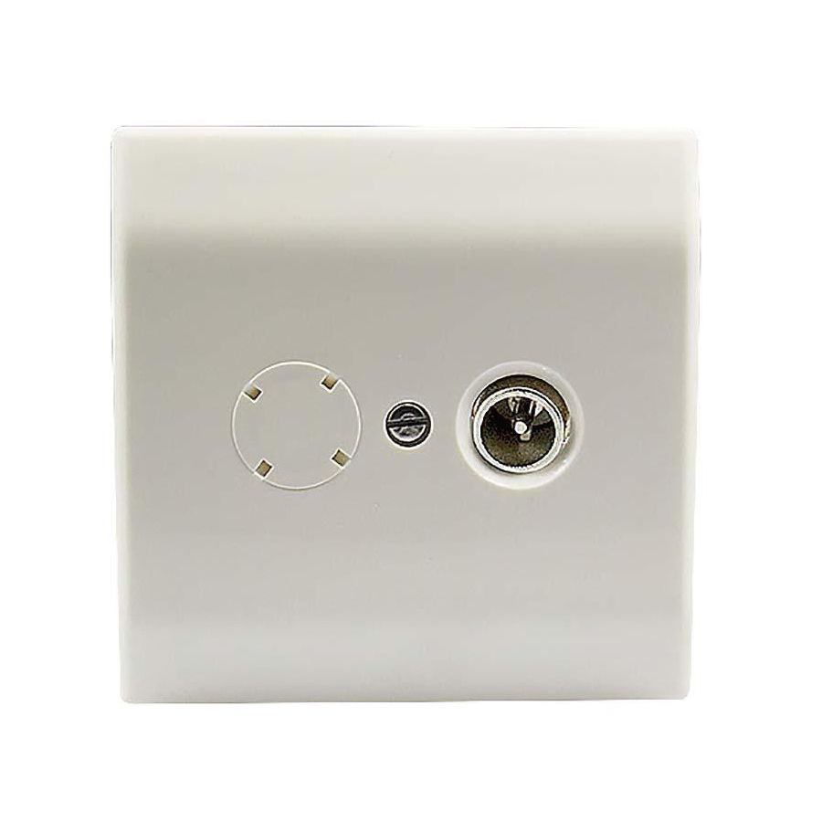 Technetix CL50-SGIM-SHOP is een eengats wandcontactdoos met een coaxaansluiting (IEC male). Daarnaast heeft deze einddoos in shopverpakking nog ruimte voor een ethernetaansluiting (los verkrijgbaar). Naast 2 GHz ready is de Technetix wcd 4g/LTE-proof en geschikt voor 4K Ultra HD.