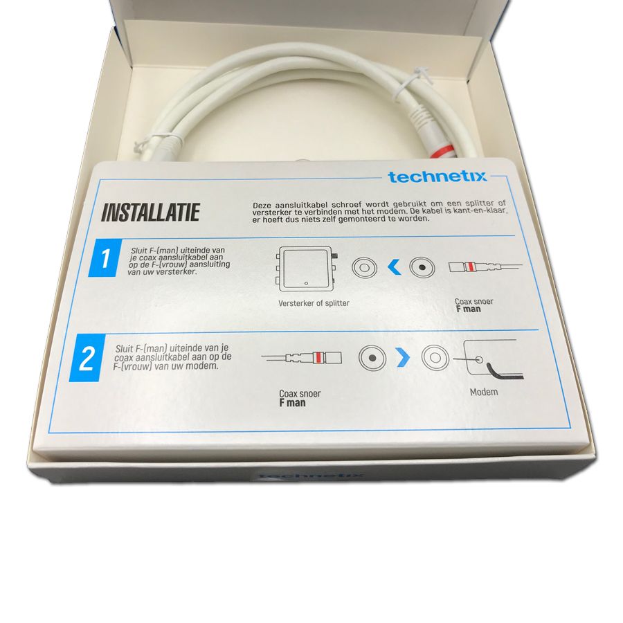 Met de Technetix modemkabel RLA++30.1.5RT sluit u een modem, mediabox, tv of radio aan op een wandcontactdoos, versterker of splitter. De kabel is voorzien van male F-connectors en Ziggo-gecertificeerd.