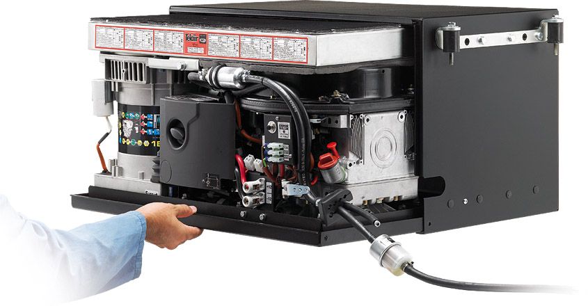 Het afstandsbedieningspaneel heeft een moderne vormgeving en een grafisch display, dat alle informatie over de werking van de generator toont. Het paneel maakt het mogelijk om het oliepeil, de bedrijfstemperatuur en het stroomverbruik te controleren. Bij afwijkingen van de standaardwaarden schakelt de motor automatisch uit. De generator kan op HANDMATIG of AUTOMATISCH worden ingesteld (indien hij ook als acculader wordt gebruikt). Daarnaast beschikt de generator over een BOOST-knop voor tijdelijke verhoging van het vermogen bij hoge elektrische belasting.