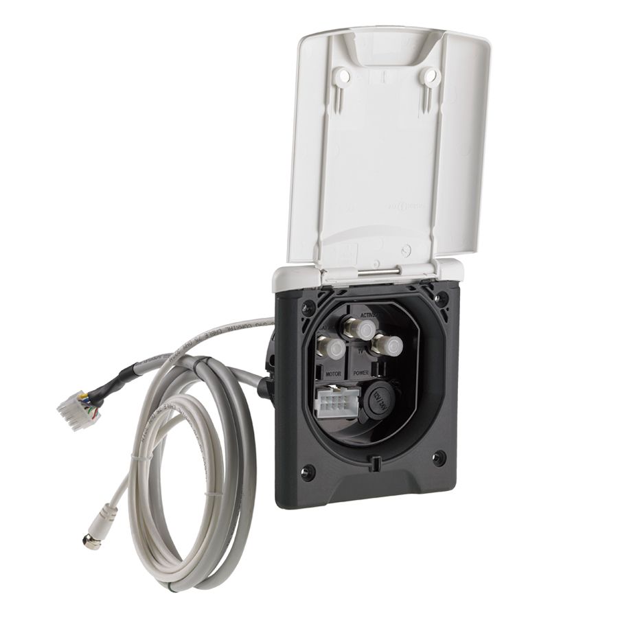 • 12 V universele contactdoos (max. 10A) met rubberen afdekking en Faston-connector voor externe tv-voeding