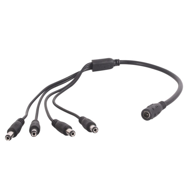 De Triax Power Extension DC cable verdeelt DC spanning over maximaal 4 camera’s in uw CCTV-systeem. De kabel heeft 1 x DC female en 4 x DC male aansluitingen.
